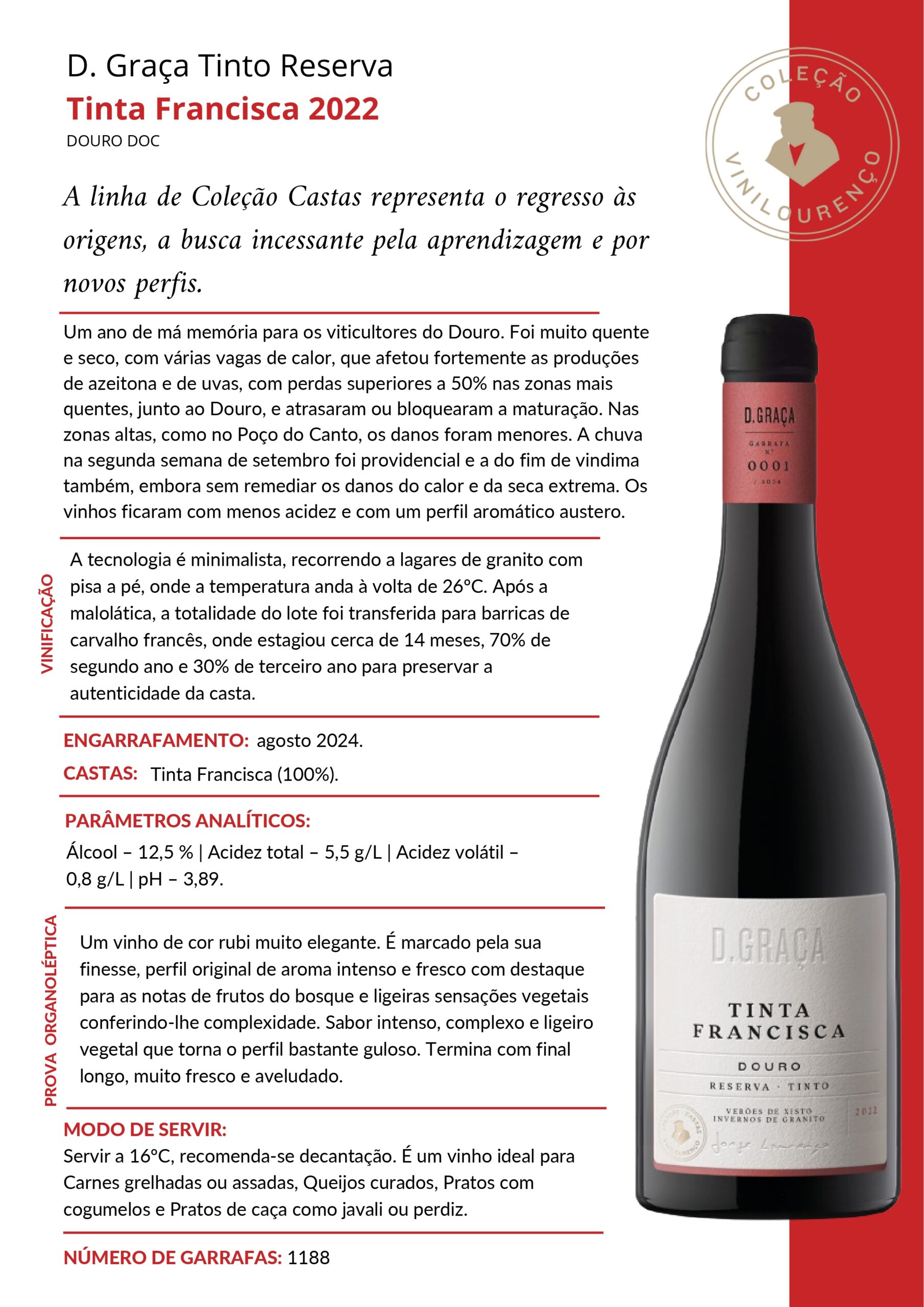 Conceito: Expressar a autenticidade da Tinta Francisca, refletindo a exuberância única de um terroir, com toda a elegância e complexidade da casta.